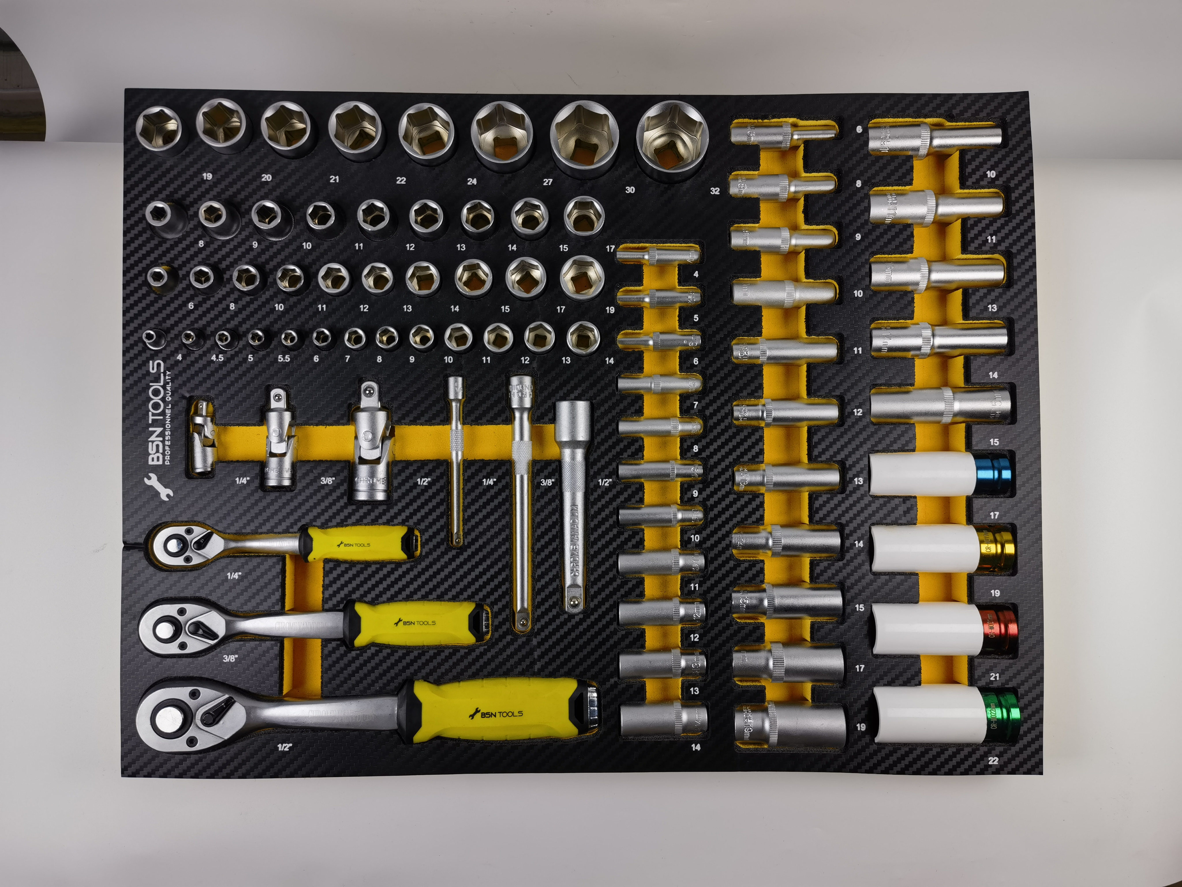 Каждый инструмент имеет специальный слот в футляре, что позволяет аккуратно организовать все, предотвратить потерю и обеспечить быстрый доступ к необходимым инструментам.