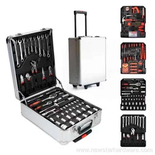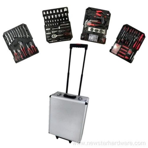 В набор входят четыре красных лотка с цветовой кодировкой, каждый из которых тщательно организован для хранения специализированных инструментов. В число инструментов входят головки из хромованадиевой стали, трещотки, плоскогубцы, отвертки и специальные предметы, такие как электрический тестер и клеевой пистолет. Ударопрочный алюминиевый корпус оснащен телескопической ручкой и гладкими колесами для удобства транспортировки, а настраиваемые параметры (гравировка логотипа, цвет корпуса) соответствуют потребностям бренда. Каждый инструмент подвергается термической обработке для придания твердости и устойчивости к коррозии, что обеспечивает долговечность даже при интенсивном использовании.
