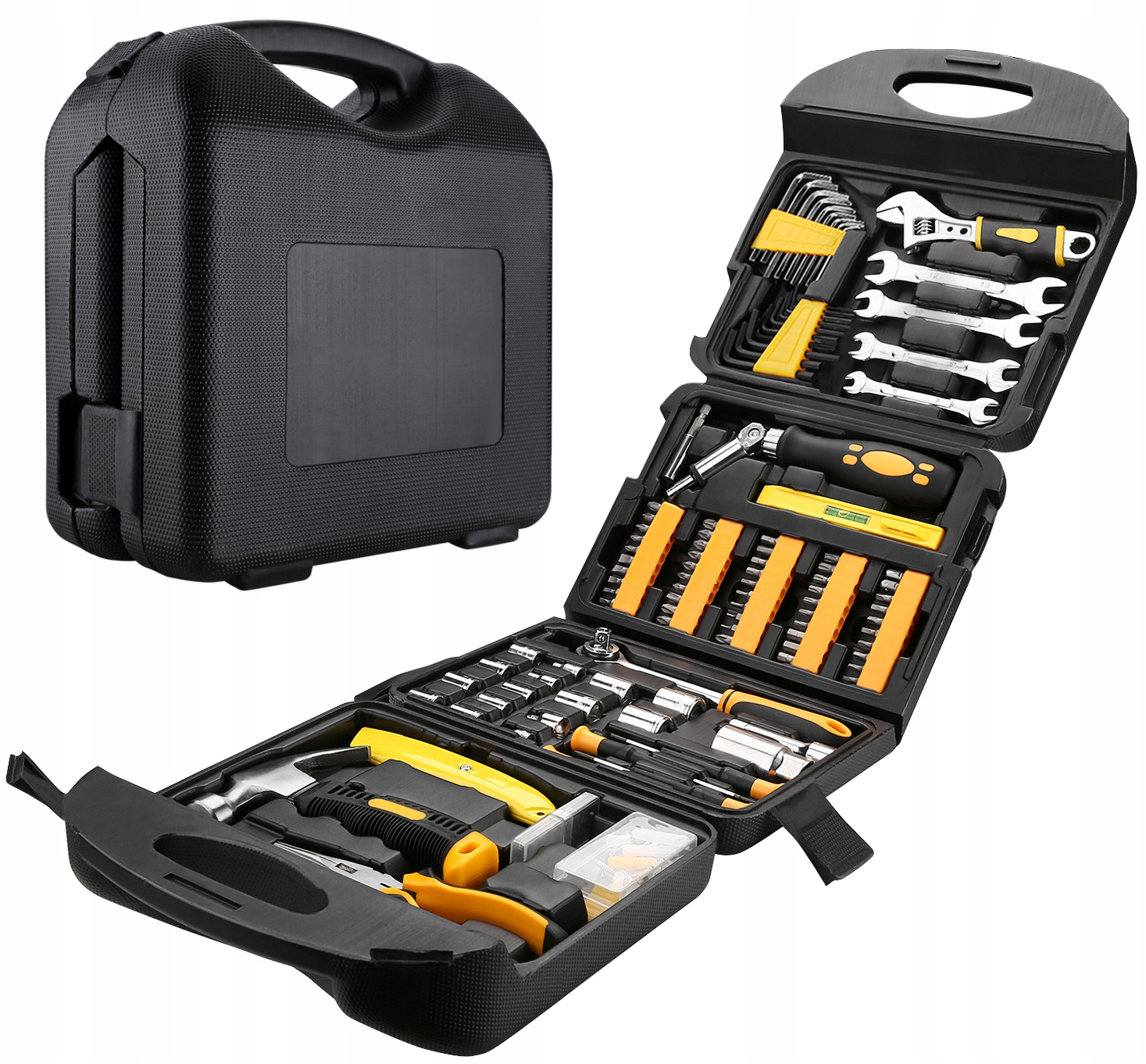 НАБОР ИНСТРУМЕНТОВ, 123 шт. Набор ручных инструментов. Профессиональные бытовые инструменты в жесткой выдувной коробке черного цвета. Инструменты, в том числе: 1–8 дюймов, разводной ключ, 1–9,5 дюйма, плоскогубцы для водяного насоса, 1 нож, 18 бит, 8–3/8 дюйма, головки 9–1/4 дюйма, головки 1–6 дюймов, плоскогубцы линейного судьи, 1–3/8 дюйма, удлинитель 1–3/8 дюйма...