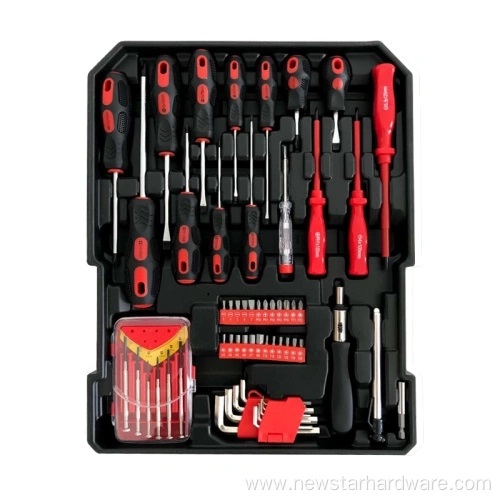 Этот из 186 предметов профессиональный набор инструментов , помещенный в прочную тележку для инструментов, идеально подходит для домашнего использования, гаражей и профессиональных помещений. Изготовленный из углеродистой стали 45#, он включает в себя широкий набор инструментов — торцевые головки, гаечные ключи, плоскогубцы, отвертки и многое другое — предназначенных для решения самых разных задач — от ремонта автомобилей до домашних инструментов «сделай сам». Эту тележку, оснащенную плавно вращающимися колесами и прочной ручкой, легко транспортировать, обеспечивая удобство там, где это необходимо.