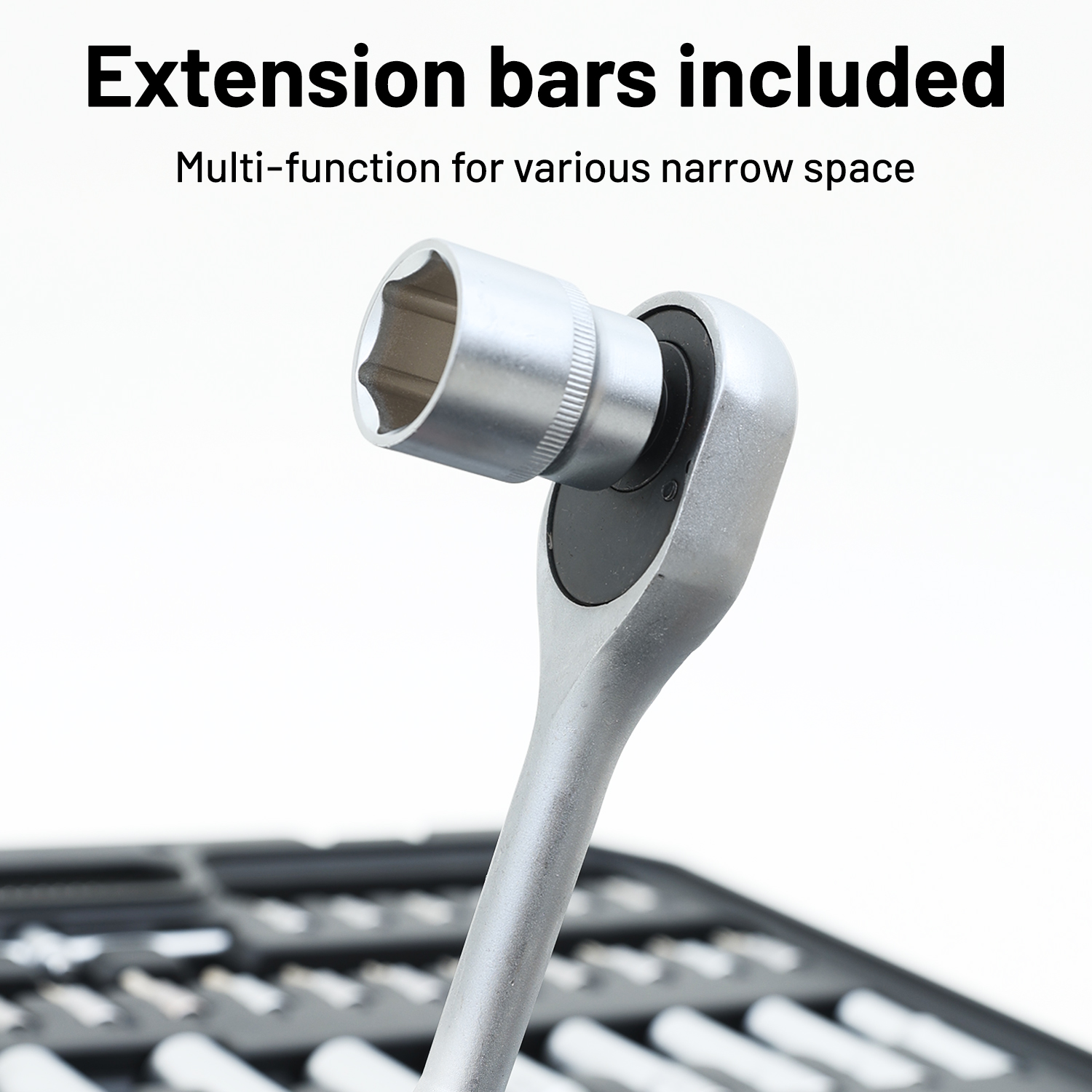 Комплексное покрытие: Этот многофункциональный набор из 216 предметов включает в себя торцевые головки и гаечные ключи различных размеров, идеально подходящие для всех ваших задач по ремонту и общему техническому обслуживанию автомобилей.