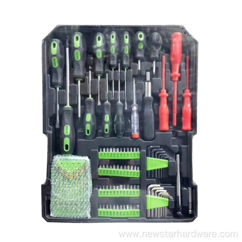 Этот набор инструментов включает в себя различные инструменты, необходимые для ежедневного ремонта, такие как отвертки, молотки, плоскогубцы, пилы, гаечные ключи и т. д., что делает его идеальным выбором для мелкого домашнего ремонта и обслуживания.