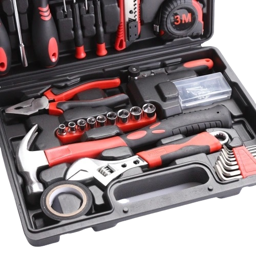 Этот набор инструментов включает в себя различные инструменты, необходимые для ежедневного ремонта, такие как отвертки, молотки, плоскогубцы, пилы, гаечные ключи и т. д., что делает его идеальным выбором для мелкого домашнего ремонта и обслуживания.