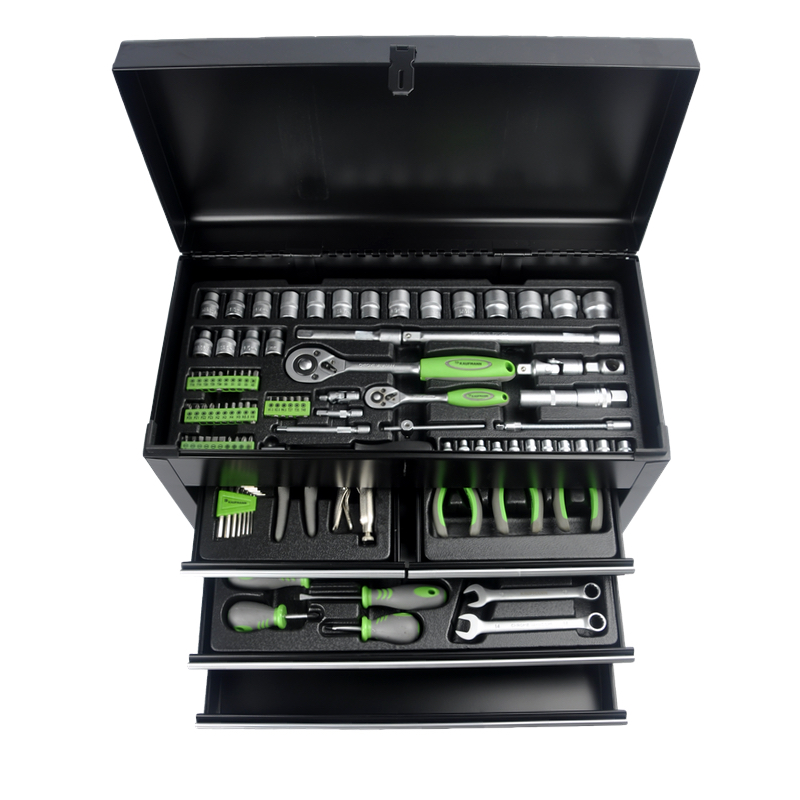 Включает в себя головки 1/4 дюйма и 1/2 дюйма, различные гаечные ключи, отвертки, плоскогубцы и другие необходимые ремонтные инструменты для удовлетворения широкого спектра потребностей в техническом обслуживании.
