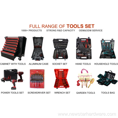 Этот набор инструментов включает в себя различные инструменты, необходимые для ежедневного ремонта, такие как отвертки, молотки, плоскогубцы, пилы, гаечные ключи и т. д., что делает его идеальным выбором для мелкого домашнего ремонта и обслуживания.