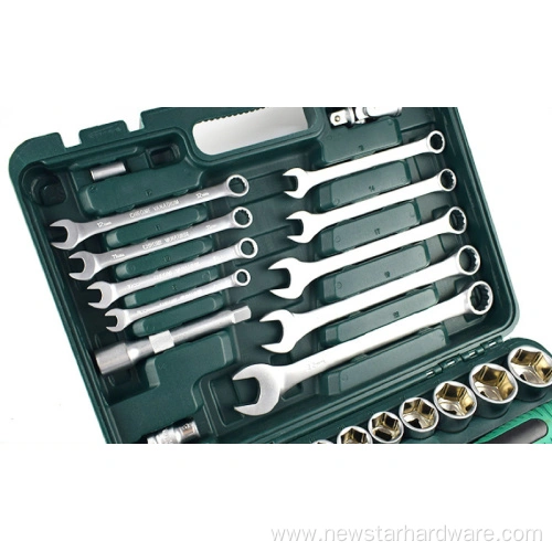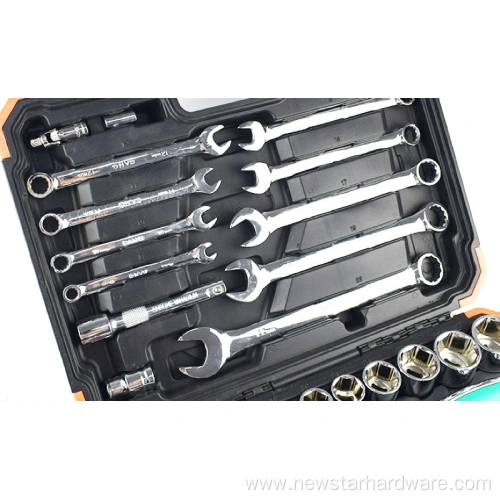 Ящик для инструментов полностью оснащен гаечными ключами различных размеров, головками, битами отверток и многим другим. Он может адаптироваться к широкому спектру сценариев ремонта и подходит для домашнего использования, гаражей и мелкомасштабного профессионального ремонта.