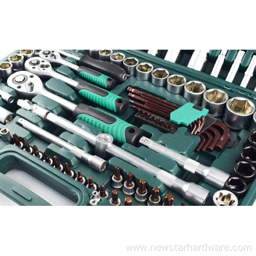 Включает в себя головки 1/4 дюйма и 1/2 дюйма, различные гаечные ключи, отвертки, плоскогубцы и другие необходимые ремонтные инструменты для удовлетворения широкого спектра потребностей в техническом обслуживании.