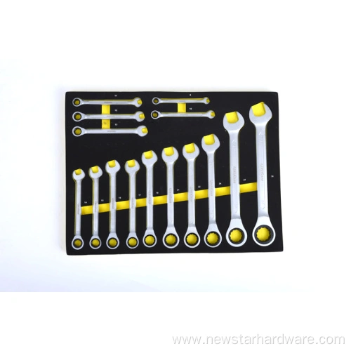 Ящик для инструментов полностью оснащен гаечными ключами различных размеров, головками, битами отверток и многим другим. Он может адаптироваться к широкому спектру сценариев ремонта и подходит для домашнего использования, гаражей и мелкомасштабного профессионального ремонта.