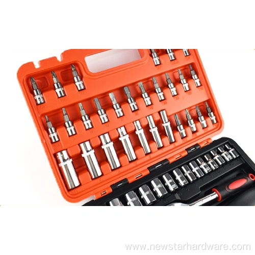 Ящик для инструментов полностью оснащен гаечными ключами различных размеров, головками, битами отверток и многим другим. Он может адаптироваться к широкому спектру сценариев ремонта и подходит для домашнего использования, гаражей и мелкомасштабного профессионального ремонта.