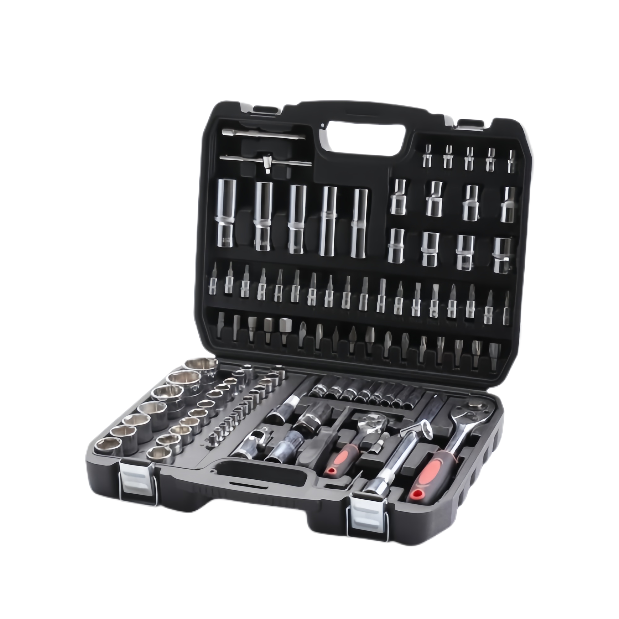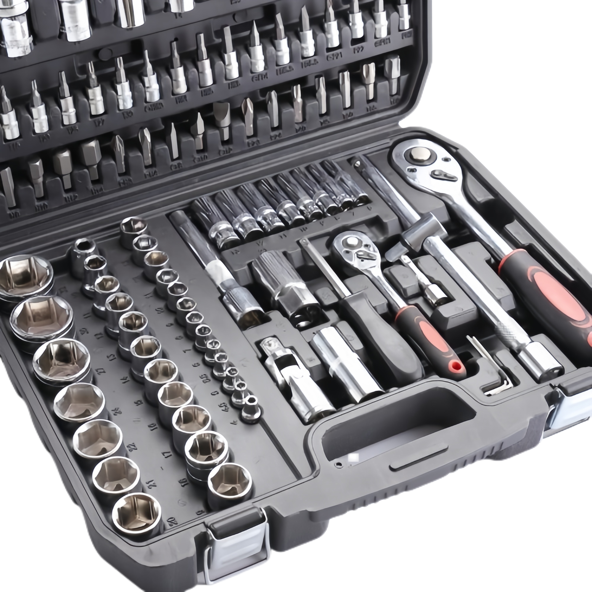 Включает в себя головки 1/4 дюйма и 1/2 дюйма, различные гаечные ключи, отвертки, плоскогубцы и другие необходимые ремонтные инструменты для удовлетворения широкого спектра потребностей в техническом обслуживании.