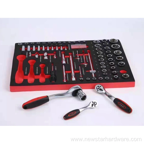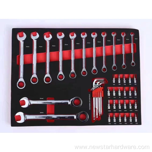 Ящик для инструментов полностью оснащен гаечными ключами различных размеров, головками, битами отверток и многим другим. Он может адаптироваться к широкому спектру сценариев ремонта и подходит для домашнего использования, гаражей и мелкомасштабного профессионального ремонта.