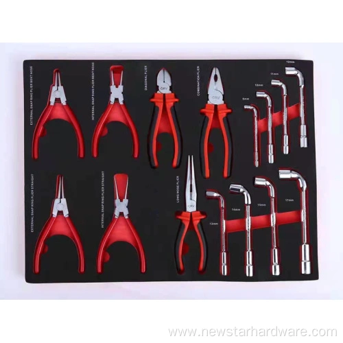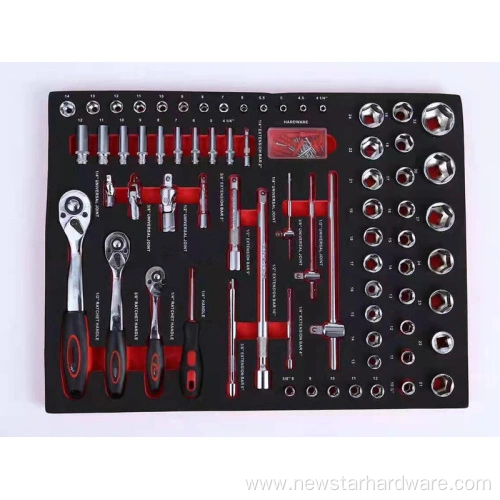 Включает в себя головки 1/4 дюйма и 1/2 дюйма, различные гаечные ключи, отвертки, плоскогубцы и другие необходимые ремонтные инструменты для удовлетворения широкого спектра потребностей в техническом обслуживании.