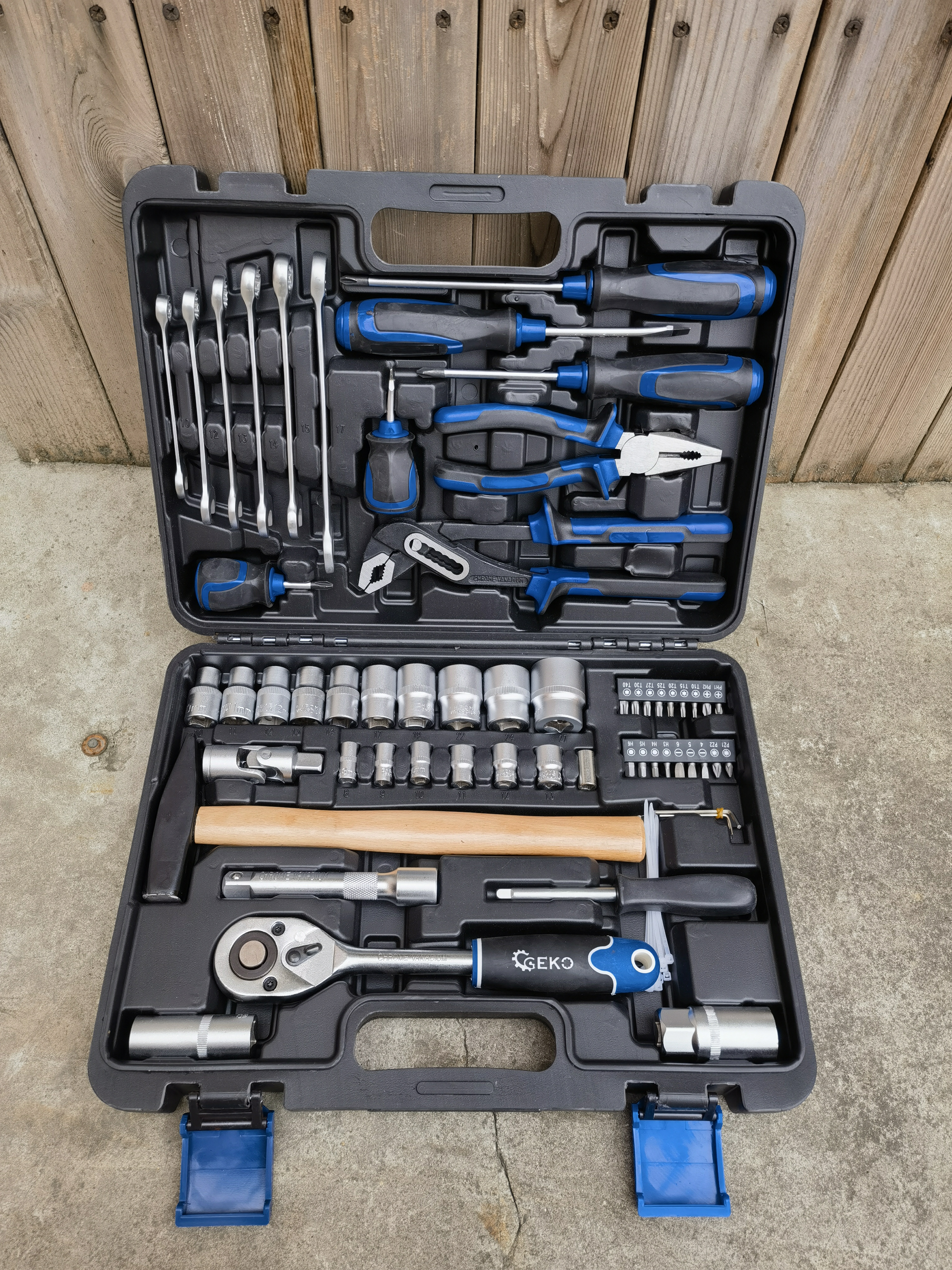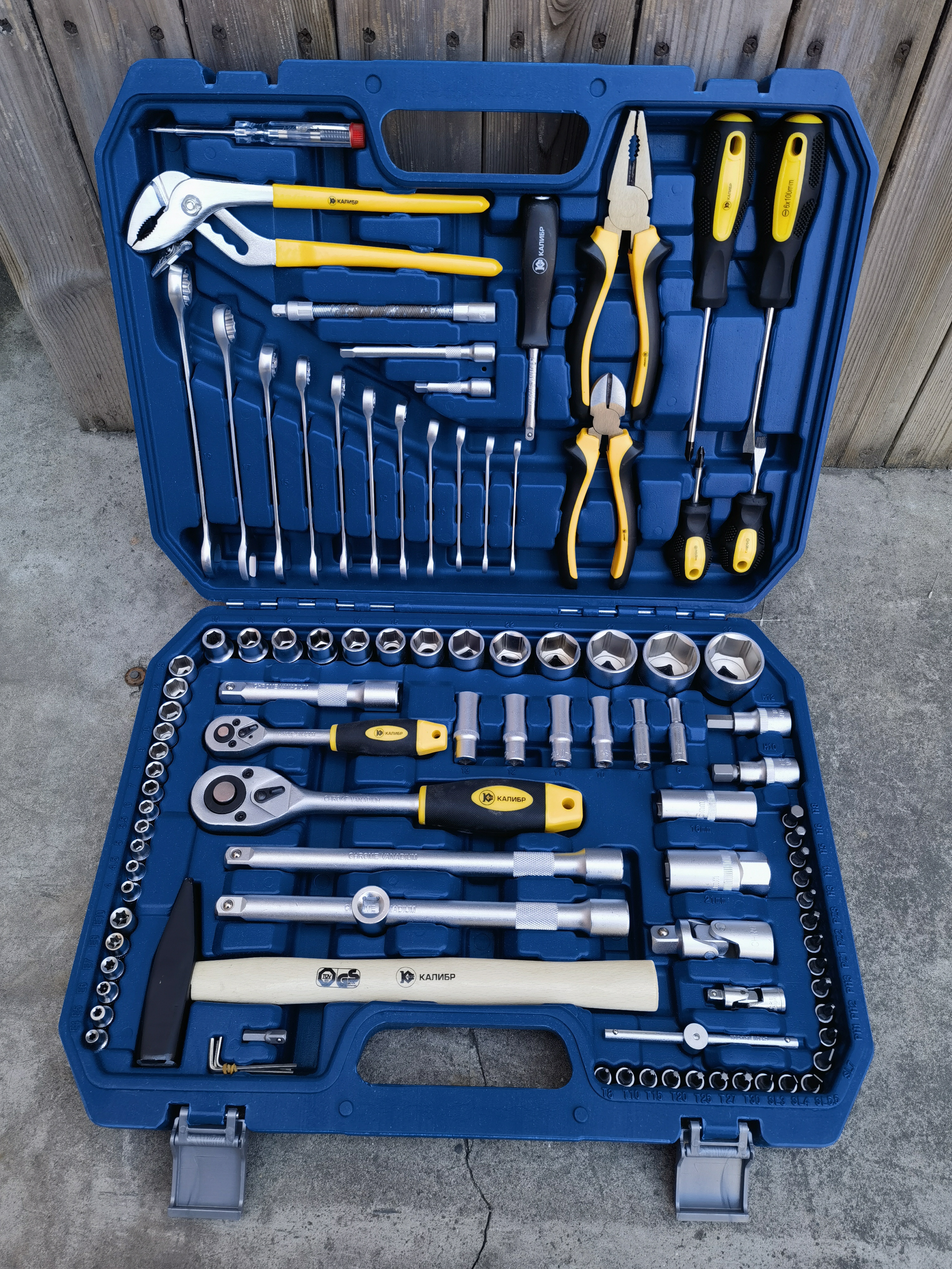 Включает в себя головки 1/4 дюйма и 1/2 дюйма, различные гаечные ключи, отвертки, плоскогубцы и другие необходимые ремонтные инструменты для удовлетворения широкого спектра потребностей в техническом обслуживании.