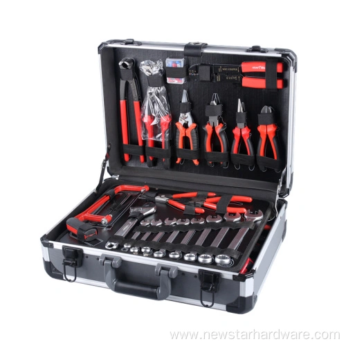 Включает в себя головки 1/4 дюйма и 1/2 дюйма, различные гаечные ключи, отвертки, плоскогубцы и другие необходимые ремонтные инструменты для удовлетворения широкого спектра потребностей в техническом обслуживании.