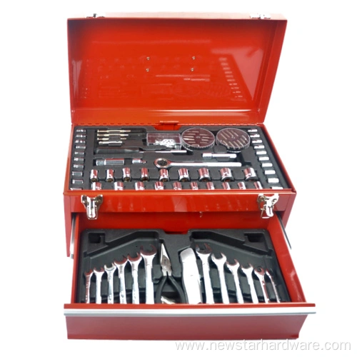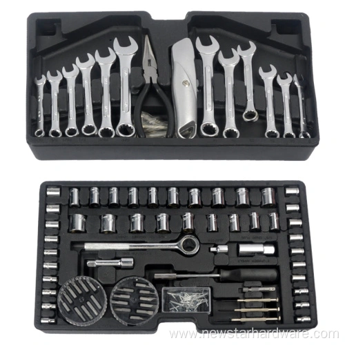 Включает в себя головки 1/4 дюйма и 1/2 дюйма, различные гаечные ключи, отвертки, плоскогубцы и другие необходимые ремонтные инструменты для удовлетворения широкого спектра потребностей в техническом обслуживании.