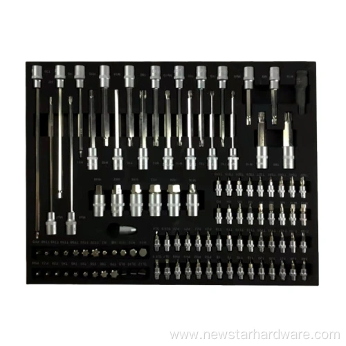 Ящик для инструментов полностью оснащен гаечными ключами различных размеров, головками, битами отверток и многим другим. Он может адаптироваться к широкому спектру сценариев ремонта и подходит для домашнего использования, гаражей и мелкомасштабного профессионального ремонта.