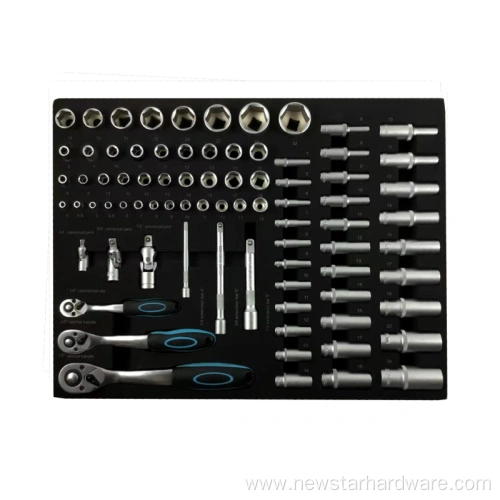 Включает в себя головки 1/4 дюйма и 1/2 дюйма, различные гаечные ключи, отвертки, плоскогубцы и другие необходимые ремонтные инструменты для удовлетворения широкого спектра потребностей в техническом обслуживании.