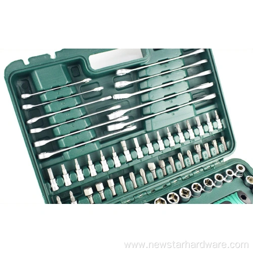 Включает в себя головки 1/4 дюйма и 1/2 дюйма, различные гаечные ключи, отвертки, плоскогубцы и другие необходимые ремонтные инструменты для удовлетворения широкого спектра потребностей в техническом обслуживании.